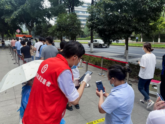 7月19日,根据新冠疫情防控需要,联盟党支部受中共成都高新区桂溪街道工作委员会号召,组织以党员为主的3名志愿者参与疫情防控工作,前往高新区奥克斯广场核酸检测点参与志愿服务。