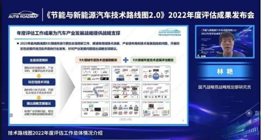 国汽战略院战略规划部研究员林艳代表研究工作组介绍了技术路线图2022年评估工作的总体情况。围绕政策、产业、技术等方向,回顾2022年全球汽车科技创新八大动向。面向节能与新能源汽车产业2025年关键里程碑目标,对本年度汽车产业进行了全面综合的总体评估。