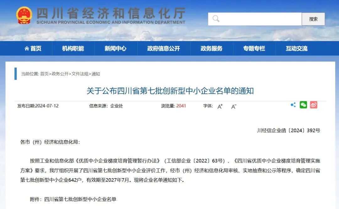 四川省第七批创新型中小企业共有642户,有效期至2027年7月。据悉,为加强优质中小企业梯度培育管理、促进中小企业高质量发展,四川出台的《四川省优质中小企业梯度培育管理实施方案》提出,创新型中小企业按季度进行评价,评价指标包括创新能力、成长性、专业化三类,经评价为创新型中小企业的,自发布之日起有效期三年。